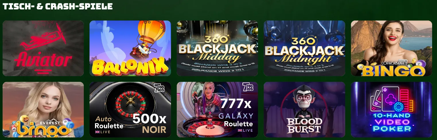 Auch Fans traditioneller Casino-Spiele kommen auf ihre Kosten. Roulette, Blackjack, Baccarat und verschiedene Poker-Varianten stehen in mehreren Ausführungen zur Verfügung. Ob europäisches Roulette, schnelle Blackjack-Tische oder spezielle Pokerformen – die Auswahl ist breit gefächert und ideal für Spieler, die feste Regeln und klare Abläufe bevorzugen.